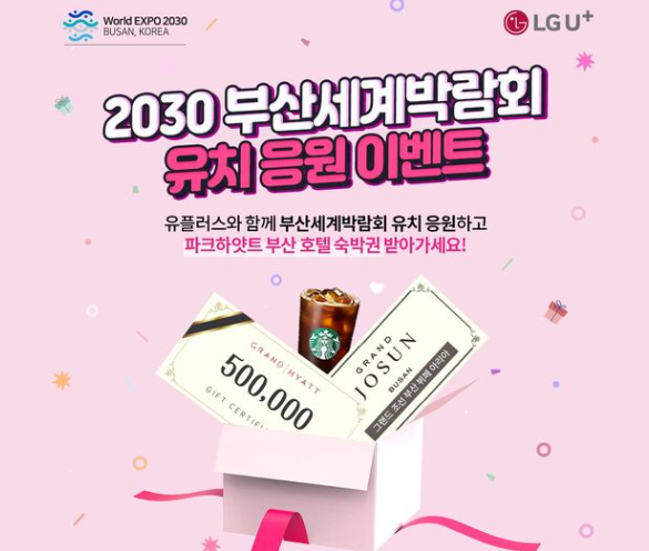 LG U+에서 2023 부산세계박람회 유치를 응원하며 댓글이벤트를 진행합니다. LG U+에서 2023 부산세계박람회 유치 성공 응원 댓글 작성하고 다양한 경품 받아 가세요.