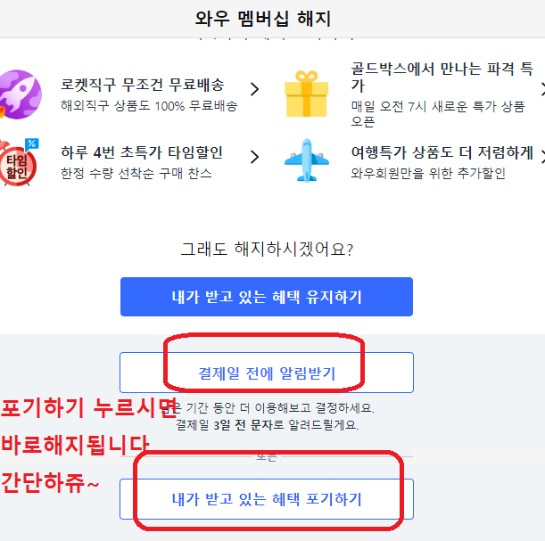 3. 해지 창에서'내가 받고 있는 혜택 포기하기'를 클릭하시면 끝 (끝까지 무료시청을 이용하겠다고 하시는 분은 알림 신청하시면 좋습니다.)