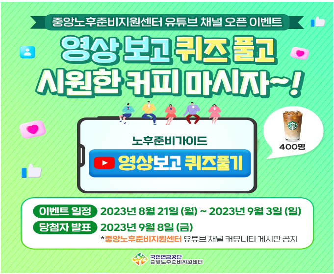 국민연금공단 중앙노후 준비지원센터 유튜브 채널 오픈 퀴즈이벤트