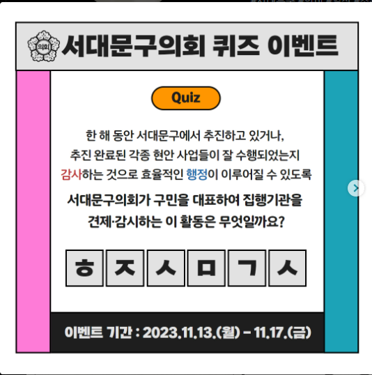 3. 아래 서대문구의회 인스타그램바로가기를 눌러 이동 후 정답 및 개인 정보 입력 후 제출