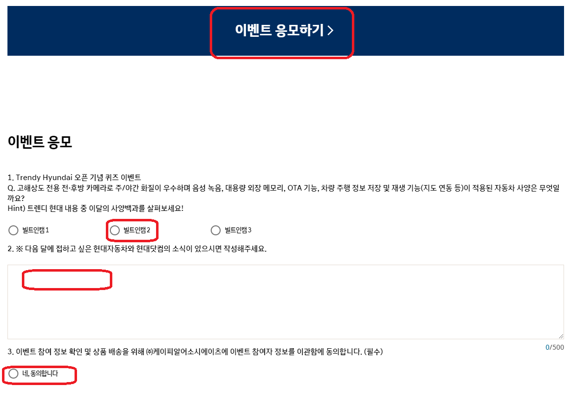 2. 이벤트 참여하기를 눌러 아래 퀴즈와 개인정보 동의