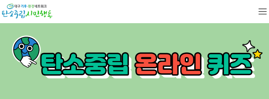 ●아래의 베너로 대구기후환경네트워크 탄소중립 온라인 퀴즈이벤트 페이지로 이동합니다.