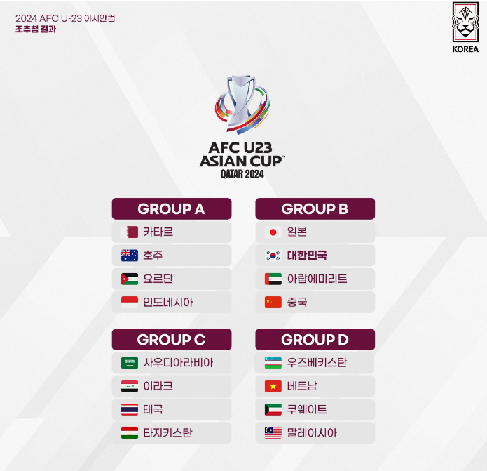 파리올림픽 아시아 최종예선(카타르 U-23 아시안컵) 조편성